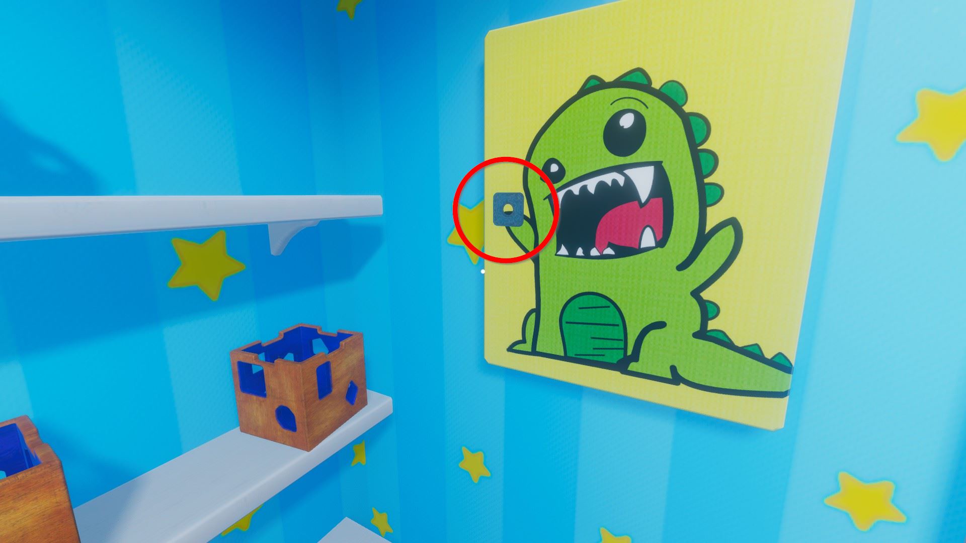 ⏹ Token 5 / 8 - take cheese from the desk drawer (yellow, heart row) and place it in front of the "trades only" mouse door in the toy making corner to receive a token: